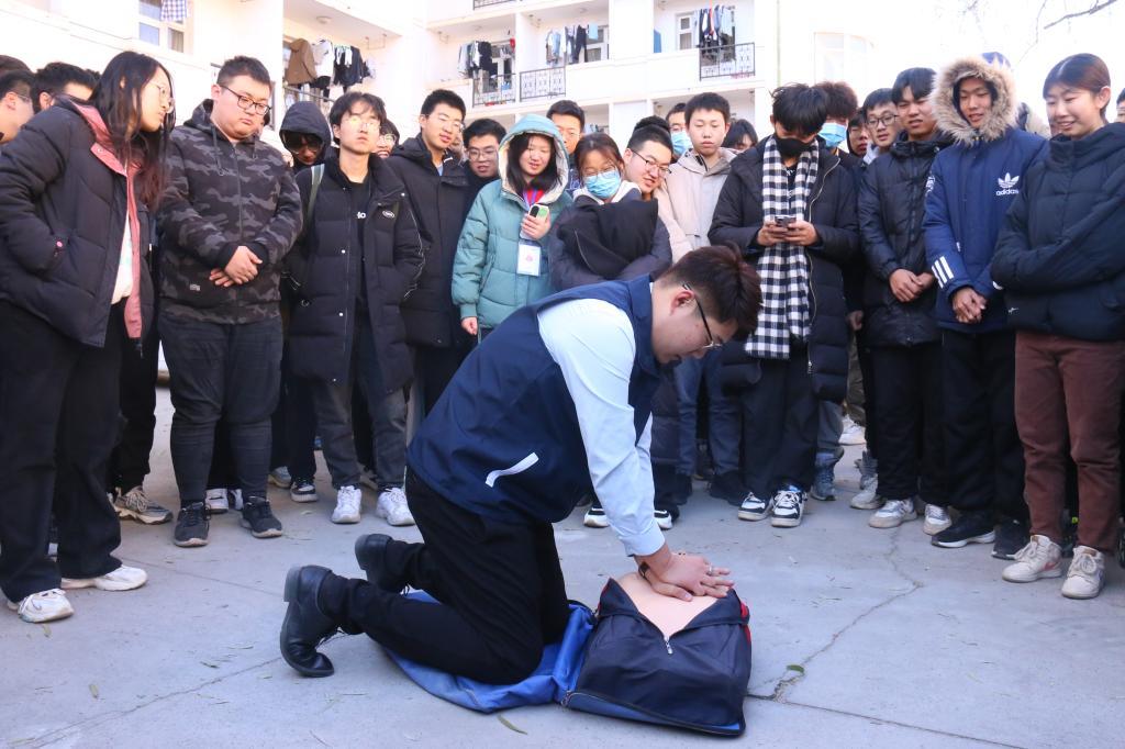 演练结束后,消防教育中心姜维昊讲师高度肯定了同学们在应急疏散逃生演练中的表现,并现场进行了灭火器的使用教学和心肺复苏应急救援的培训,在场师生积极参与,从“看、提、拔、握、压”到“叫、喊、看、压、抬、吹、打”,同学们学以致用,熟练掌握了各项救援技能。王彪老师对此次消防应急疏散逃生演练活动进行总结。他表示,本次演练检验了学院学生骨干和各学生组织之间的应急联动机制和全员同学们的自救自护意识,希望通过本次消防应急疏散逃生演练,增强全院同学的消防安全意识,确保在火灾来临时能快速、高效、有序地进行逃生,最大限度保护自身的生命安全。