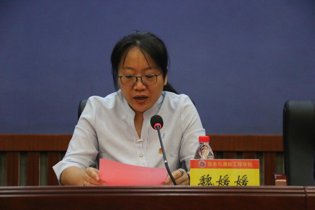 纪念“五四”运动105周年表彰大会在图书馆五层学术报告厅隆重召开。学院党委书记曹凤才、党委副书记兼副院长魏媛媛、教学院长陈友兴以及各专业负责人出席了大会。会议由院团委书记闫婷主持。