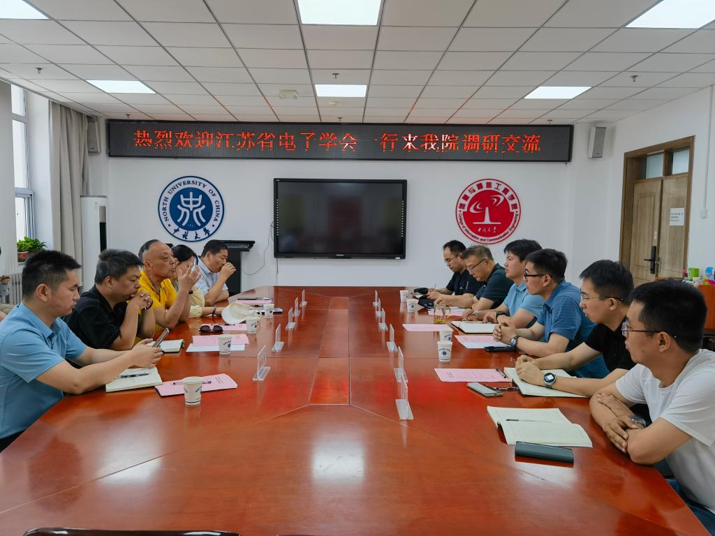 2024年6月24日上午,江苏省电子学会常务副理事长徐旗、副秘书长杨洋、昌明、新安电器总经理金红心、彭汉光等一行5人来学院调研交流。学院党委书记曹凤才、副院长刘吉和学院教师代表出席座谈会。