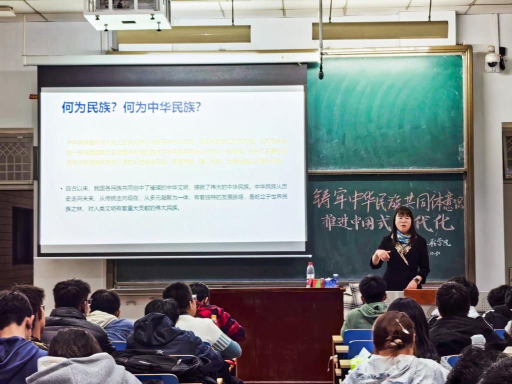常开霞老师以“铸牢中华民族共同体意识,推进中华民族伟大复兴”为主题,解读了“铸牢中华民族共同体意识”的深刻内涵,她强调在新时代新征程上,铸牢中华民族共同体意识已经成为实现中华民族伟大复兴的重要基石。广大青年学子应深化对中华民族共同体意识的理解,树立远大理想抱负,增强爱国主义情怀,为推进中华民族伟大复兴贡献青春力量。