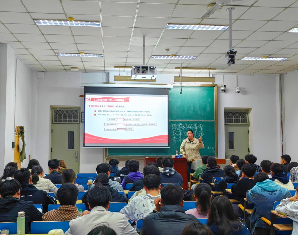 邀请马克思主义学院常开霞老师和电气与控制工程学院薛艳霞老师宣讲党的二十届三中全会精神,学院全体学生骨干聆听报告。