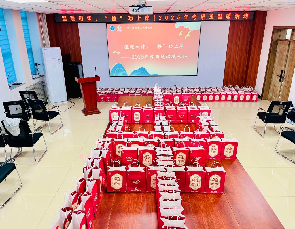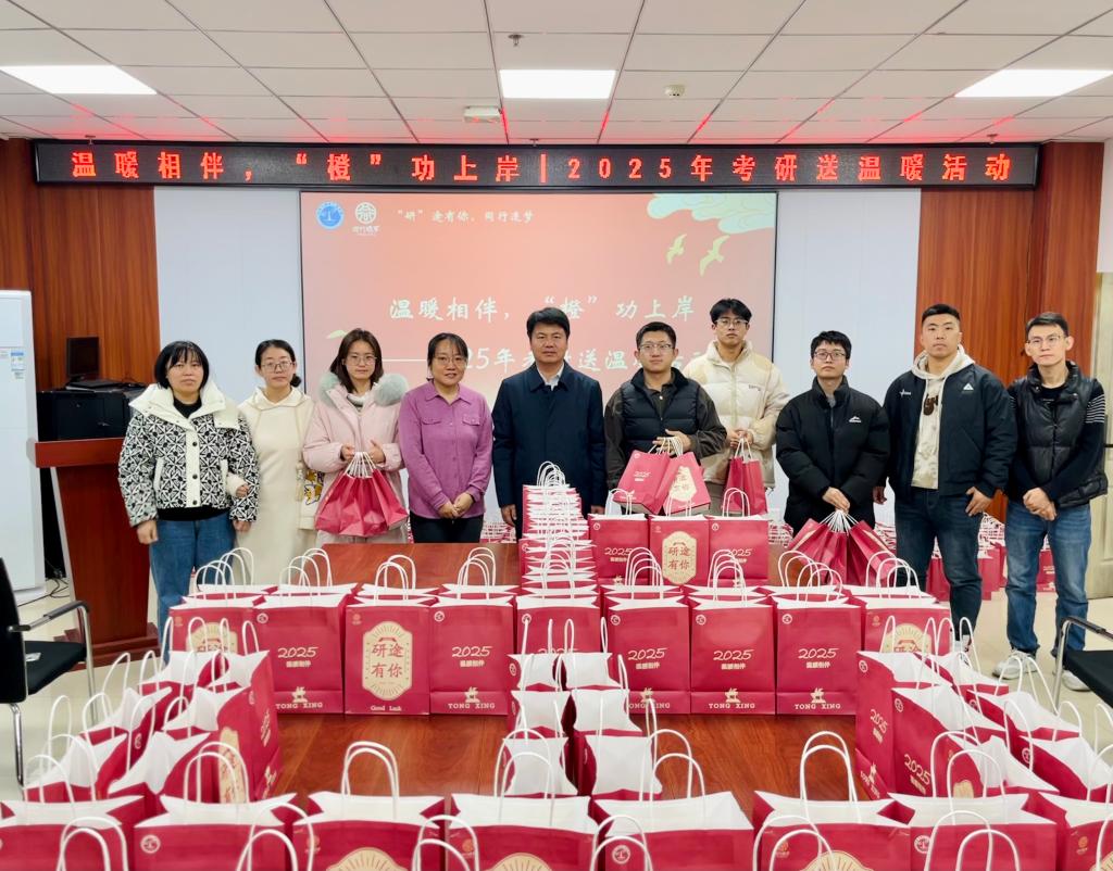 在院楼715会议室举办“温暖相伴,‘橙’功上岸2025年考研送温暖”活动。学院党委书记曹凤才、党委副书记兼副院长魏媛媛、毕业班班主任和毕业班学生代表参加了活动。