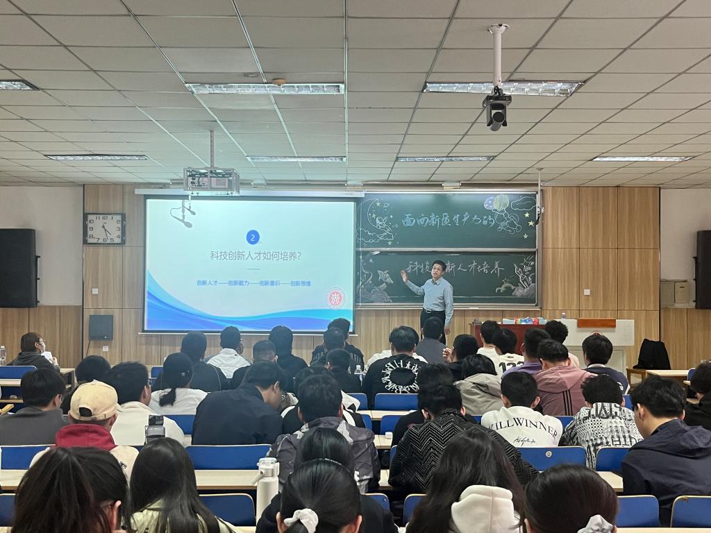 在09102教室举办了题为“面向新质生产力的科技创新人才培养”的主题班会。本次主题班会由中北大学副校长杨风暴主讲,学院近300名本科生参加。