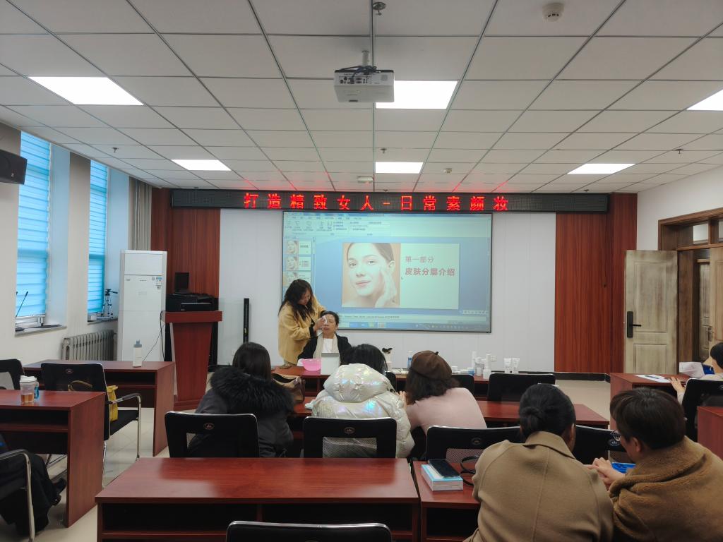 工会于3月7日举办“打造精致女人-日常素颜妆”知识讲座,讲座吸引了60余名女教工参加。