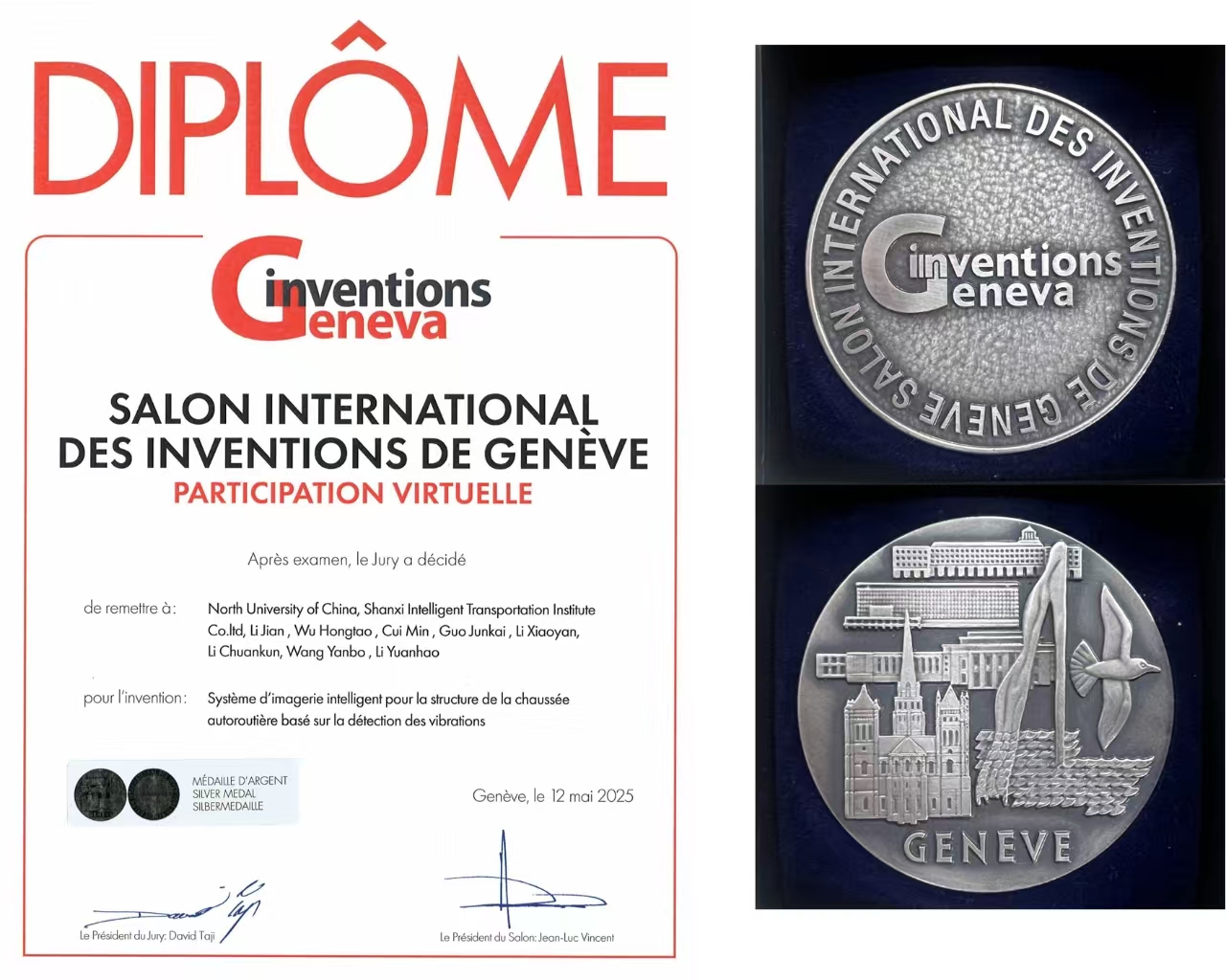 李剑教授团队牵头,联合山西省智慧交通研究院申报的《Intelligent imaging system for highway subgrade structure based on vibration detection》,从全球40个国家和地区的1000余项创新成果中脱颖而出,获发明展银奖。
