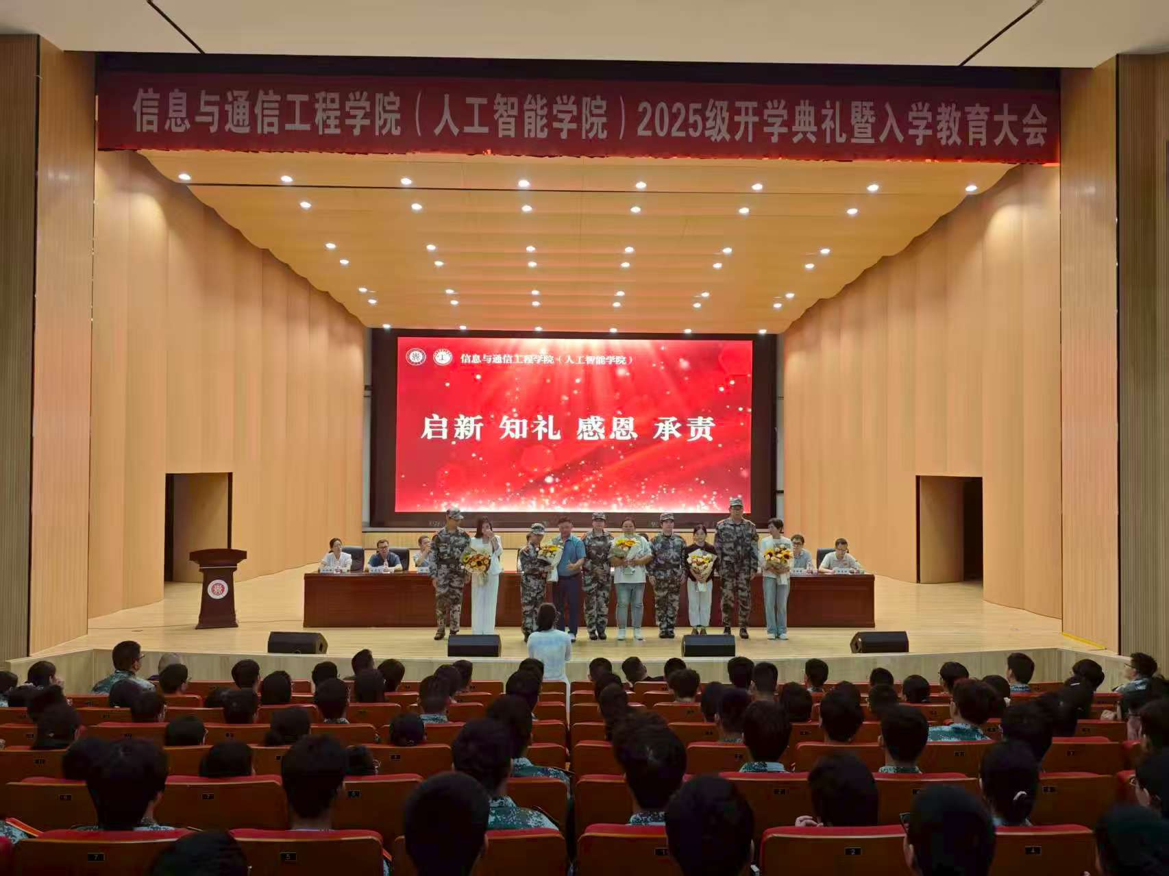 学院党委书记孙豫峰为新生讲授开学第一课。他以“立志、勤学、正心”为题,向新生提出三点期望:一要成为有理想、有追求的信通人,将个人发展融入民族复兴的伟大征程;二要成为有良知、有温度的信通人,注重修身正心、仁爱友善,以真诚温暖他人,在集体中共同进步;三要成为有担当、有责任的信通人,勇挑重担,在实践中提升能力,努力成长为可堪大用的时代新人。