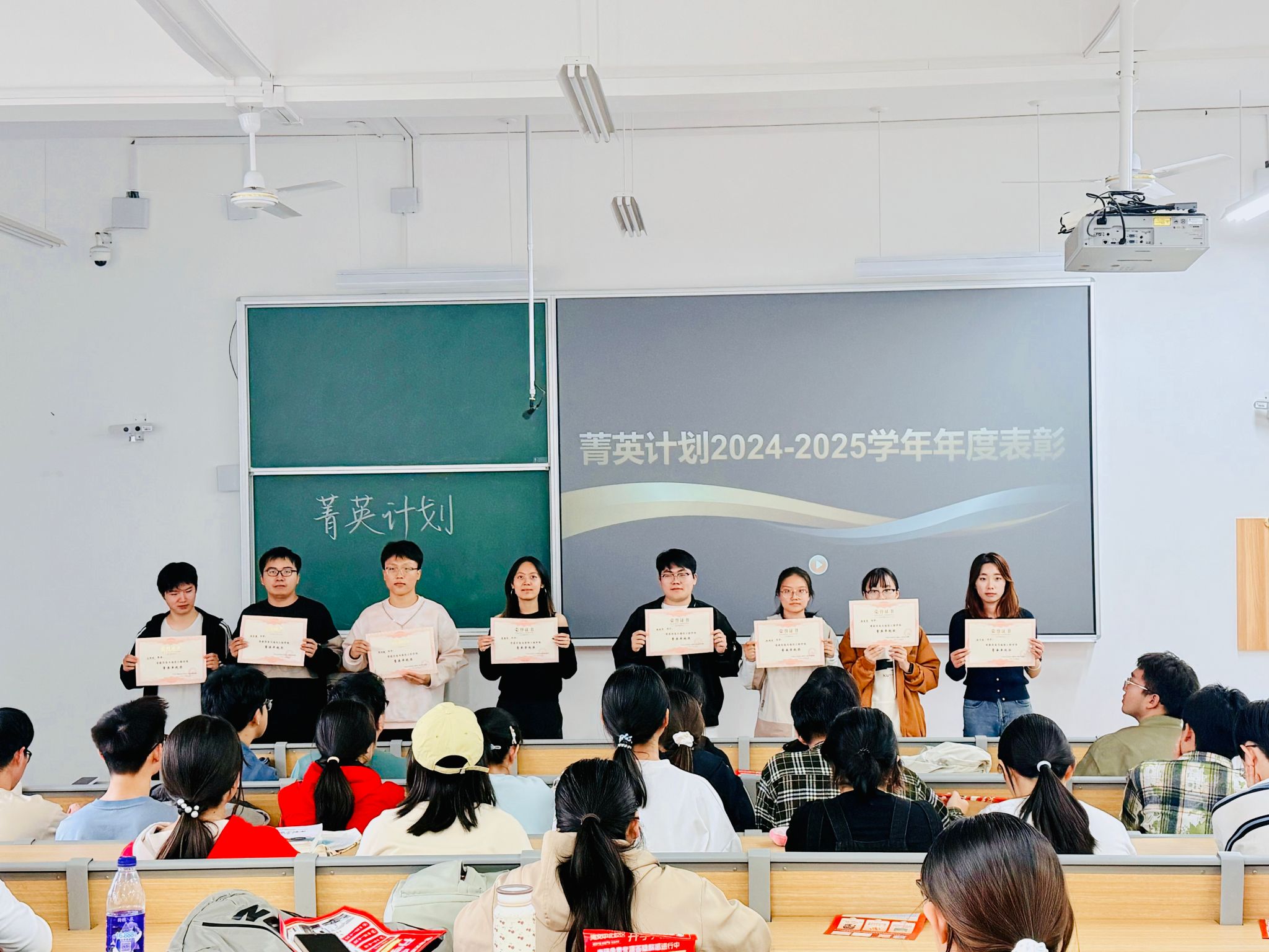 大会对上半年的运行情况进行了全面总结。2025年是“菁英计划”正式体系化运营的第一年,上半年“星锐成长计划”圆满收官,经过过程性培养,28名大一年级学生实现蜕变,成功通过考核;“同舟共创计划”成效显著,取得A+类赛事省级一等奖5项、A类赛事国家级一等奖1项等各类竞赛奖项157项。会上,向上一年度表现优异的同学颁发了“菁英成长奖”和“菁英卓越奖”,表彰他们的优异表现,并进行了榜样事迹分享,激励全体成员继续奋进前行。