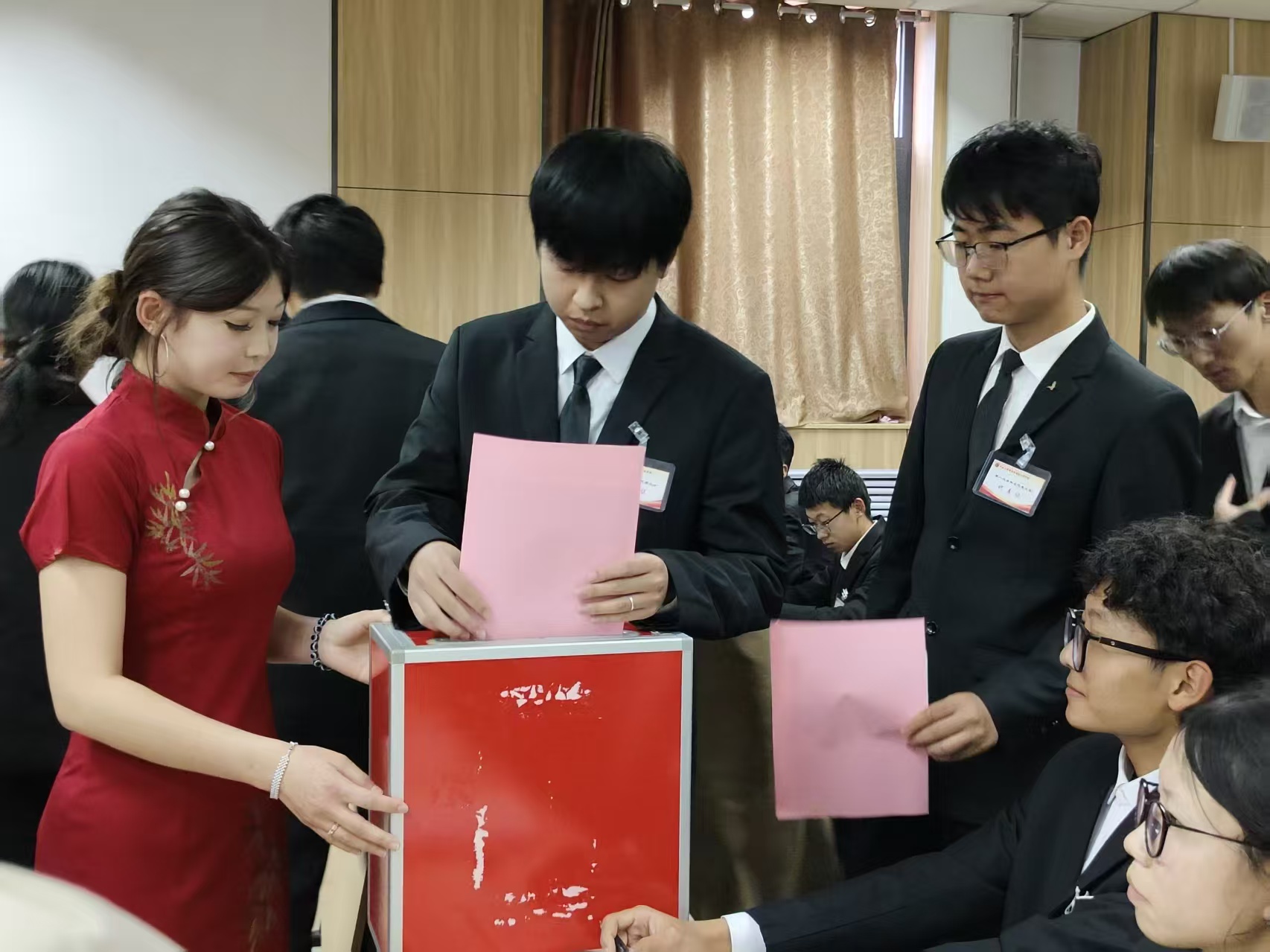 大会表决通过了总监票人、监票人,总计票人、计票人名单及选举办法,并投票选举产生了新一届学生会主席团、研究生会主席团成员和中北大学第七次学生代表大会代表、第五次研究生代表大会代表。学院团委书记闫婷宣读了选举结果。