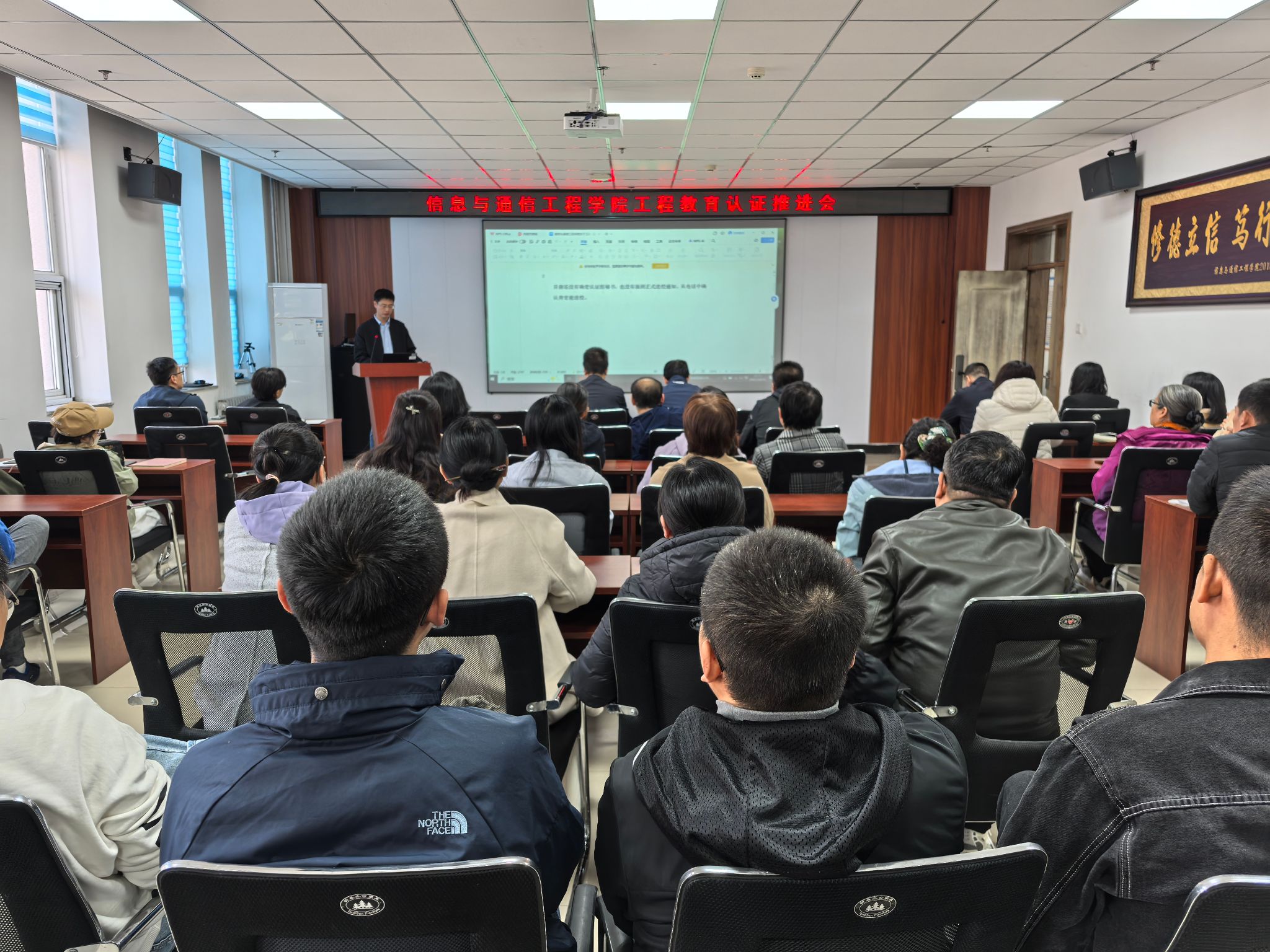 在院楼715召开了工程教育认证推进会。学院领导班子、各专业责任人、科室负责人及电子信息工程、通信工程等相关专业全体教师参加会议。会议由副院长陈友兴主持。