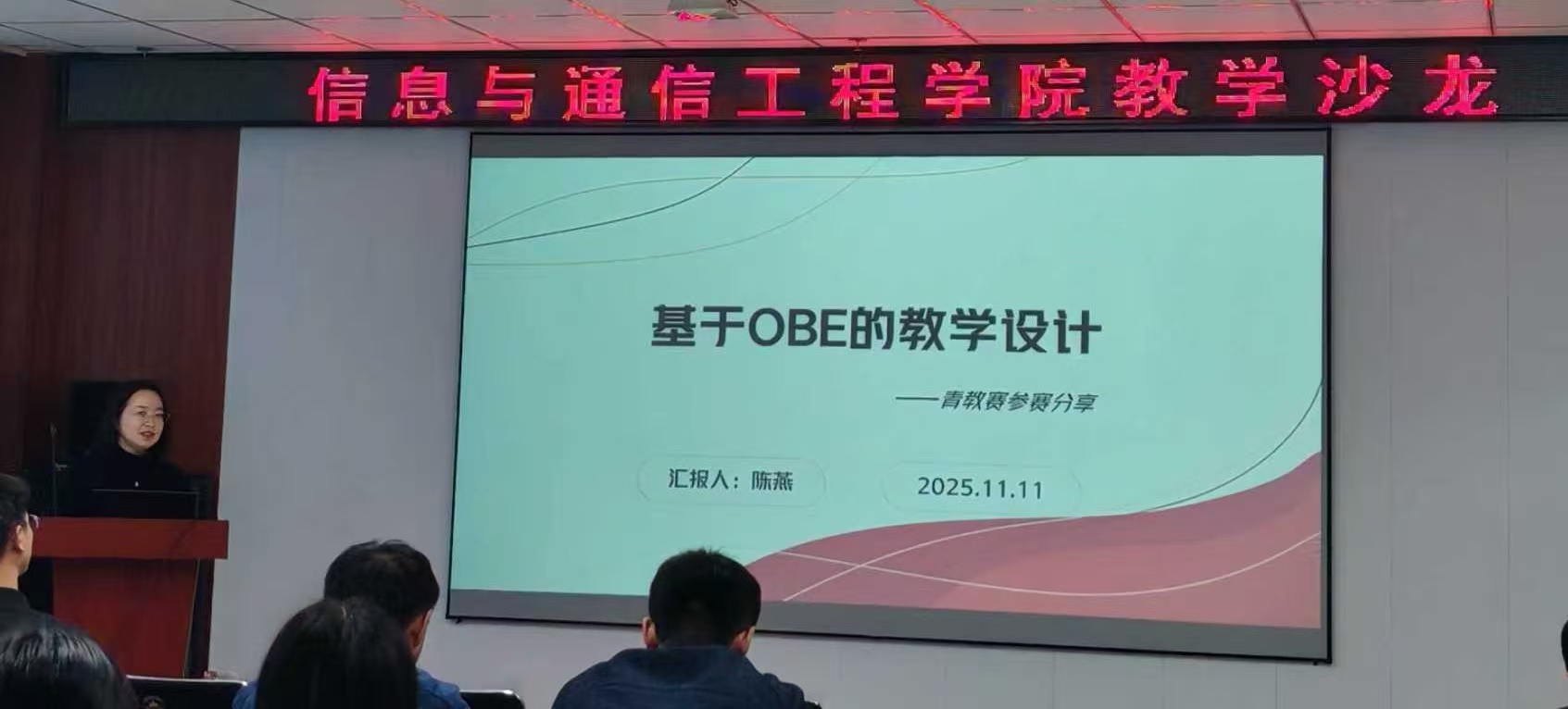 会上,侯慧玲结合其主讲课程《网络与通信》的丰富教学经验,结合授课竞赛备赛过程,系统阐述了如何在教学内容、方法、评价及资源建设等多个维度进行系统性优化与创新,就授课竞赛备赛经验为在座的老师进行了细致的分享,其分享融汇了深厚的理论功底与卓有成效的实践案例,为青年教师提供了极具价值的教学改革思路。
