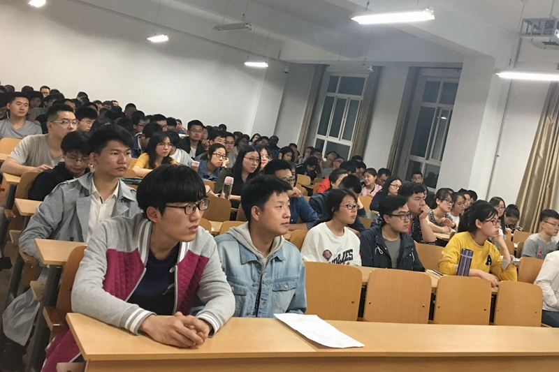 接着由上届参赛获奖团队代表杨涛和李翔同学为大家传授参赛经验。参加技术竞赛的杨涛同学从报名、选题、完成作品、提交作品、作品展示五个方面总结了参赛经验。他以团队的获奖作品水下定位系统为例,说明了团队分工,创新点突出的作品,全面逻辑的论文书写是获奖所必不可少的要素。参加商业计划书专赛的李翔同学以团队的获奖作品24h远程智能动态健康检测仪为例,从赛前准备、答辩技巧、赛后收获三个方面分享了参赛经验。内容丰富,同学们受益匪浅,现场氛围高涨。