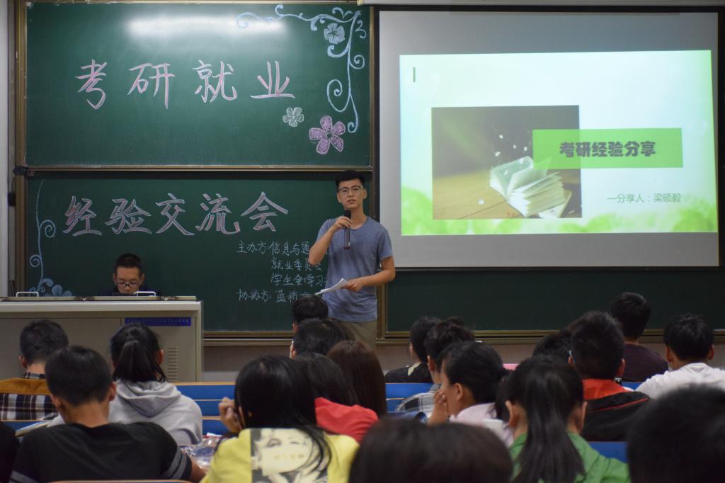 就业委员会和学生会学习部联合举办的考研就业经验交流会圆满落下帷幕。这次考研就业经验交流会针对不同的专业分为三场举办,旨在为大三以及对就业与考研有兴趣的同学答疑解惑、指明方向。