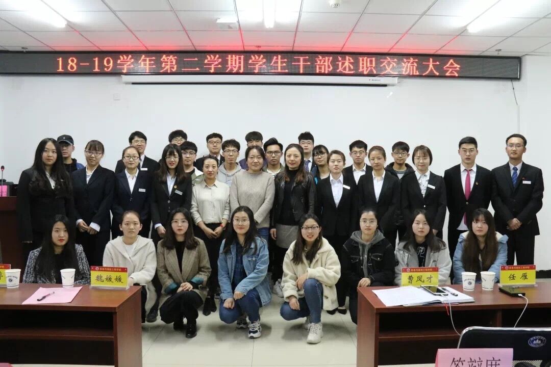 分团委组织部承办的18-19学年第二学期学生干部述职交流大会于科学楼B座715如期举行。院党委书记曹凤才、党委副书记兼副院长魏媛媛、学生科科长任雁、团委副书记闫婷及禁漫
