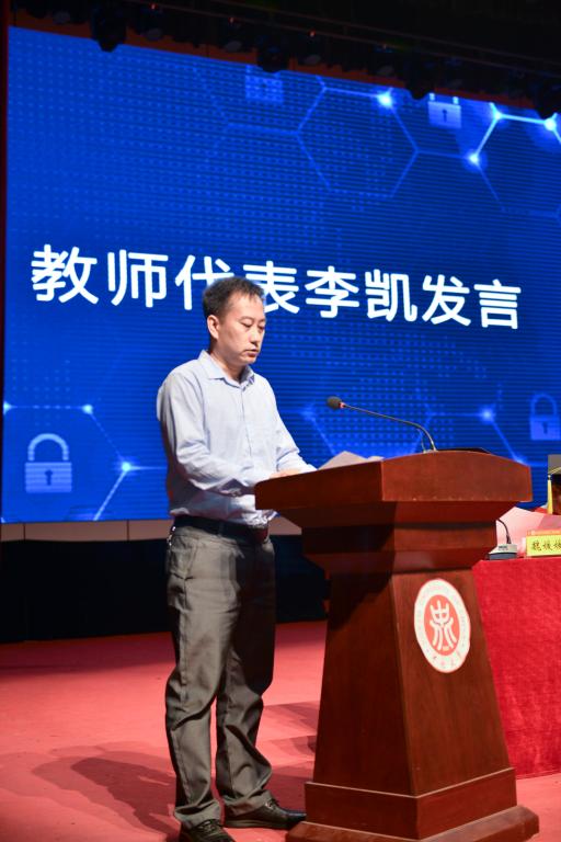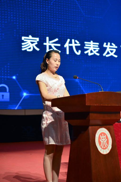 接着,校长奖章获得者保送至复旦大学的15050442班胡朝煜同学的母亲郭瑞英女士作为家长代表发言,代表家长表达了对学校辛勤培育的感谢和对学校良好发展的祝愿。教师代表李凯希望同学们勤奋学习、积极工作,在平凡的工作岗位上建功立业。毕业生代表杨鸿泽同学深切表达了对学院领导、老师的感激之情和对同学、朋友的不舍之情,一句“再见,同学;你好,校友”,让无数同学潸然泪下。在校生代表王艺璇同学表示将继承学长、学姐们的精神,报效祖国,回报社会,同时也祝愿学长、学姐们在日后事业中鹏程万里,前程似锦。