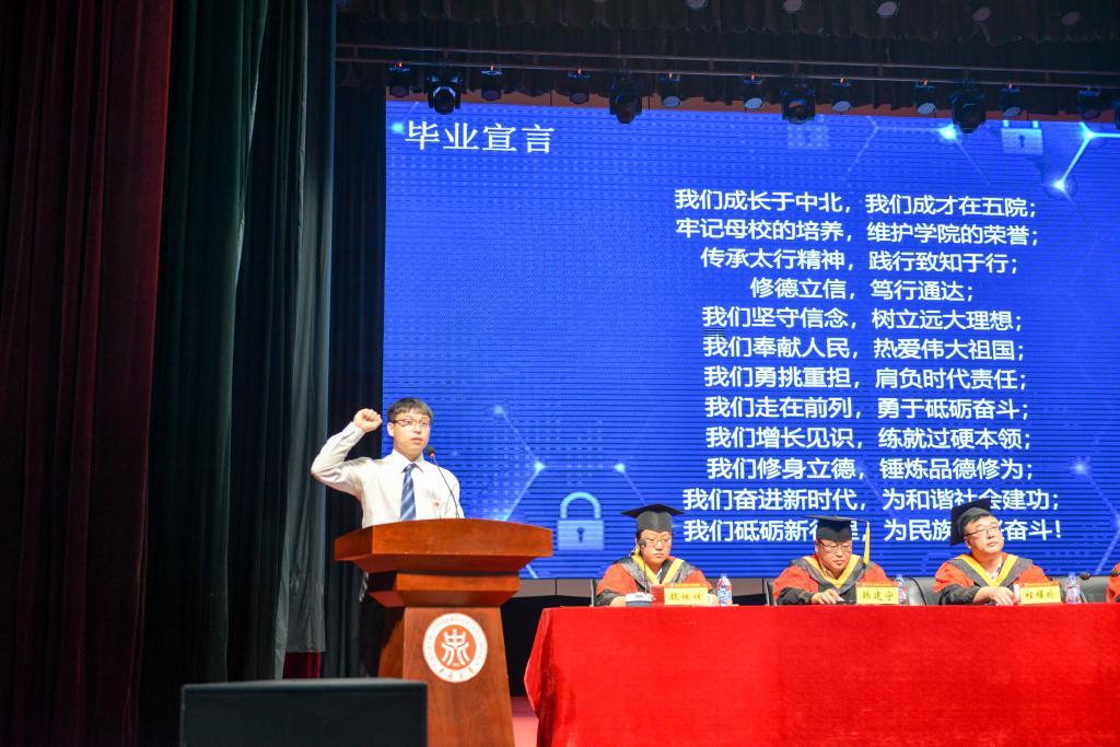 党委书记曹凤才、院长杨风暴、副院长王黎明、光学工程学科管理部主任程耀瑜、生物医学工程学科管理部主任张权、信息与通信工程学科管理部副主任韩建宁、王晨光、陈平、姚金杰,学院2019届全体毕业生、毕业班班主任共同参加了本次毕业典礼,典礼由院党委副书记魏媛媛主持。