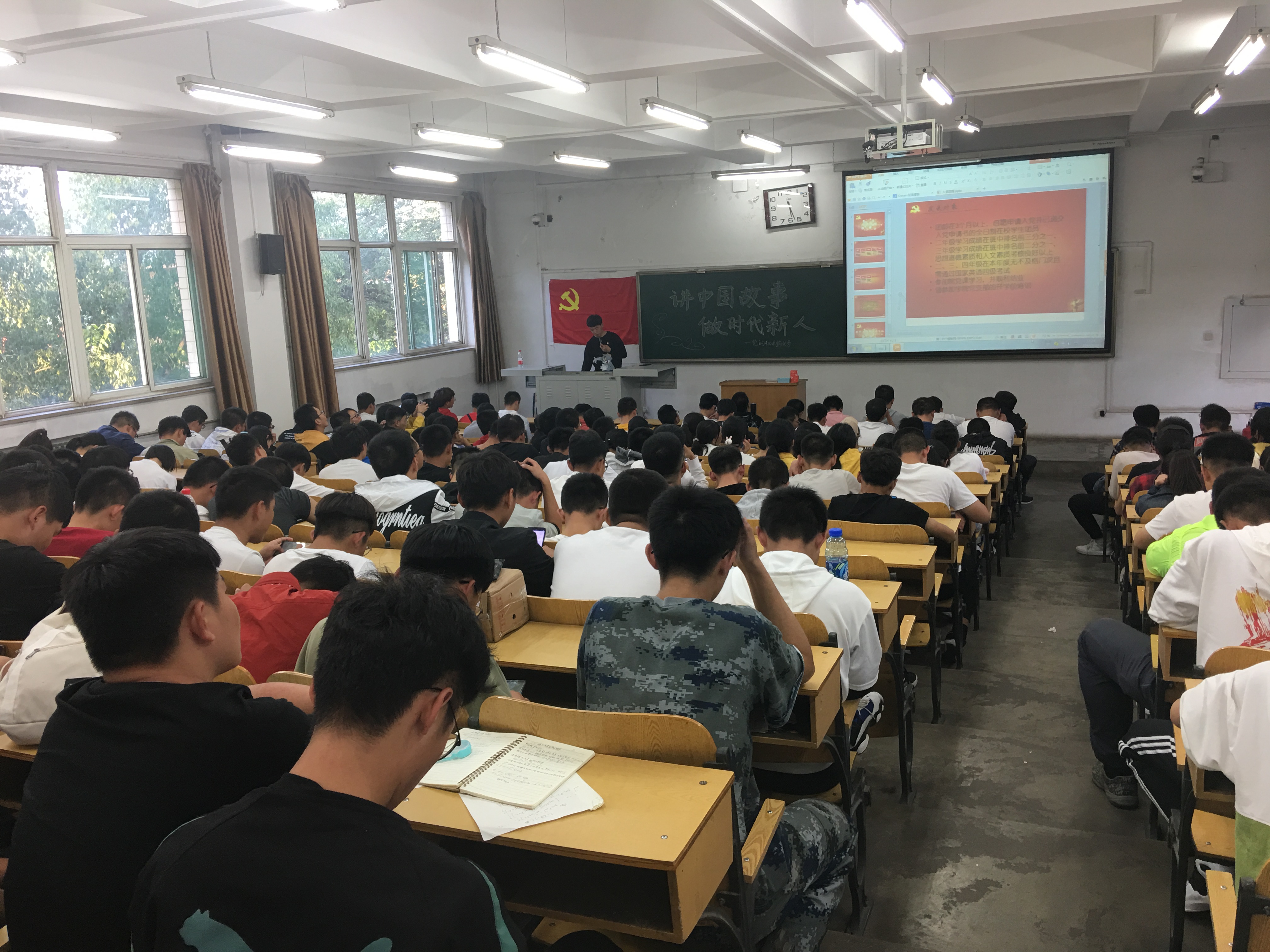 本次主题教育活动分为五个部分:1、“党在我心中,永远跟党走”;2、“凝聚新力量,激发正能量”;3、“讲中国故事,做时代新人”;4、“点亮青春之灯,奉献成就人生”;5、“奋力拼搏争先锋,积极向上早入党”,各支部副书记从党团知识到党员的权利与义务、从入党动机到入党流程,以及入党申请书相关材料的书写等方面给新生进行了详细而生动的讲解,相信每一位同学都能在此次培训中有所收获,使自己的思想受到洗礼,激发向党组织靠拢的热情,争取早日成为一名共产党员。