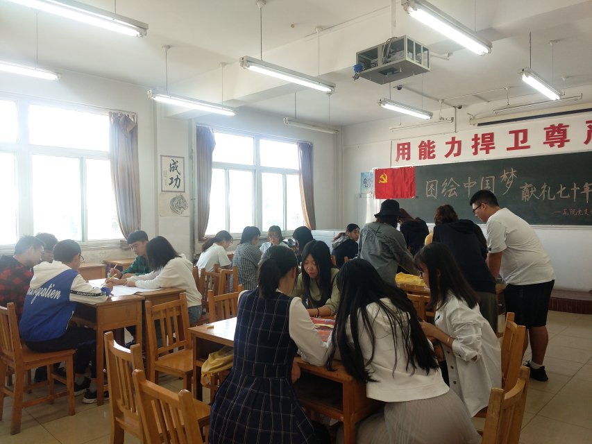 学生党支部特举办“图绘中国梦,献礼七十年”绘画活动。本次活动举办时间为2019年9月28日上午9点,地点在10409教室,由禁漫