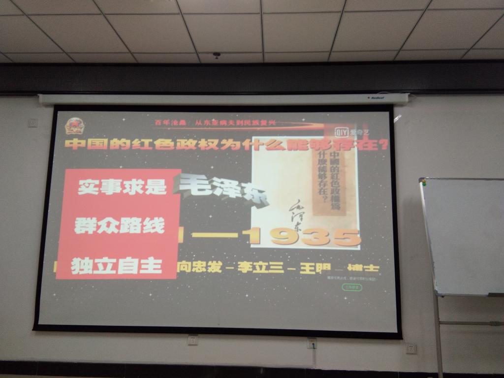 视频制作图文并茂,金教授讲得声情并茂,观看的时候,全体党员聚精会神,或因列强的轻视而气愤,或因麻木无知的普通民众而悲哀,或因背叛了理想信念、丢弃了礼义廉耻的文人政客而愤慨,更因那些为了民族大业而奋勇前进的伟人伟业而敬佩。中国近代的沧桑巨变在眼前慢慢展开,历史长河中,我们感受到了共产党人的骨气和中国民族精神的光辉。