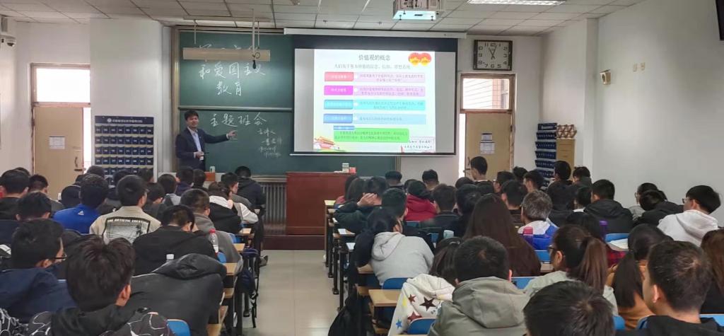 曹书记首先以“三季虫”为引,教育同学们要想全面了解社会发展的过去、现在与未来,一定要跨越时间的束缚。并从时间视角、空间视角和辩证思维三个维度向大家讲述何为“中国梦”。并从中国千年的辉煌讲到康乾盛世的“落日余晖”;从地区经济差距讲到实现共同富裕;从与周边国家领土争端讲到中美贸易摩擦的实质。由古朔今,讲到当今中国发展所面临的机遇和挑战,并通过新中国成立以来取得的伟大成就激励同学们对祖国未来发展信心以和报效祖国的决心。