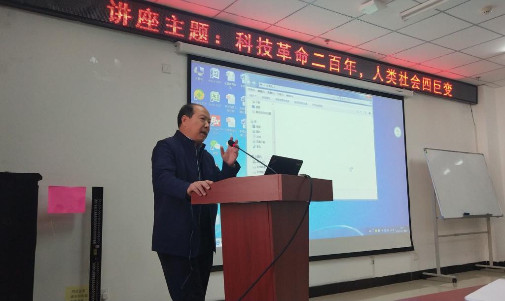 2019年11月27日下午,中国科学院西安光学精密机械研究所赵宝升研究员在科学楼B座715学术报告厅为广大师生做了《科技革命二百年人类社会四巨变》的学术讲座,增进了大家对科技创新进步与社会发展变迁的全面认知,科研副院长王明泉教授出席并主持讲座。