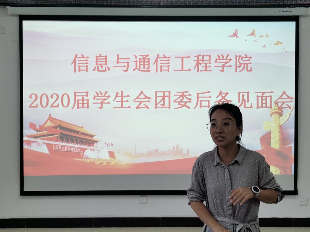 于9月8日在院楼715会议室举行学生干部后备见面会,学院团委书记闫婷老师、王彪老师、分团委副书记王采慧、学生会主席吕建宁等主席团成员以及全体学生后备干部参加了会议。