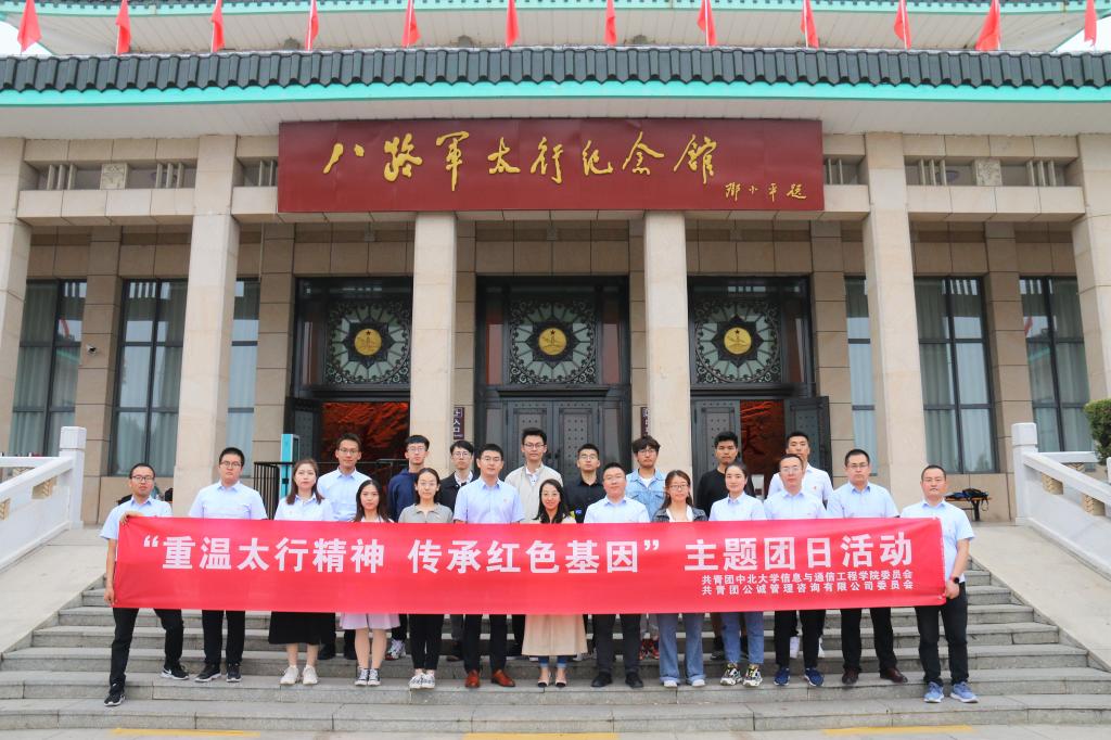 签约仪式后,双方赴长治武乡县太行山八路军纪念馆,进行“重温太行精神 传承红色基因”的主题团日活动,重温多年前那一段血雨腥风、豪迈悲壮的抗战历史,重新感受太行英雄舍生忘死、抗击日寇的伟大情怀。公诚公司山西分公司团支部书记胡春昊带领大家面向团旗,庄严宣誓,重温入团誓词。
