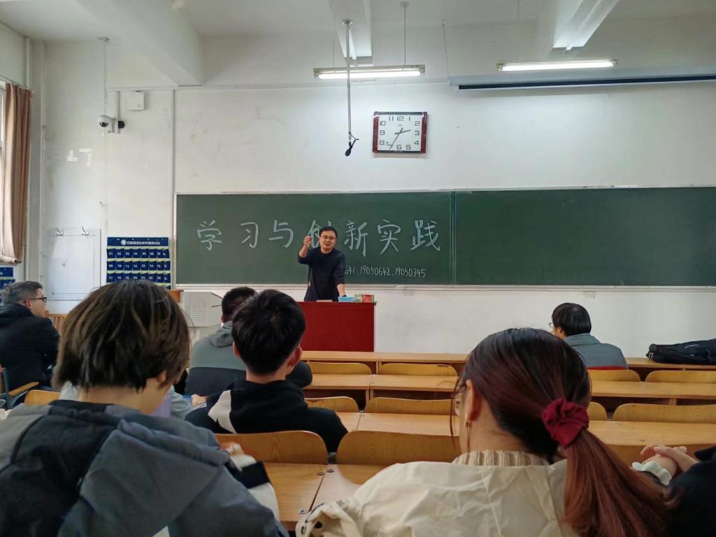 2020年11月16日,在10101H教室,人工智能系主任陈平教授为19级人工智能专业的同学们做了一场关于学习和创新实践的主题班会。