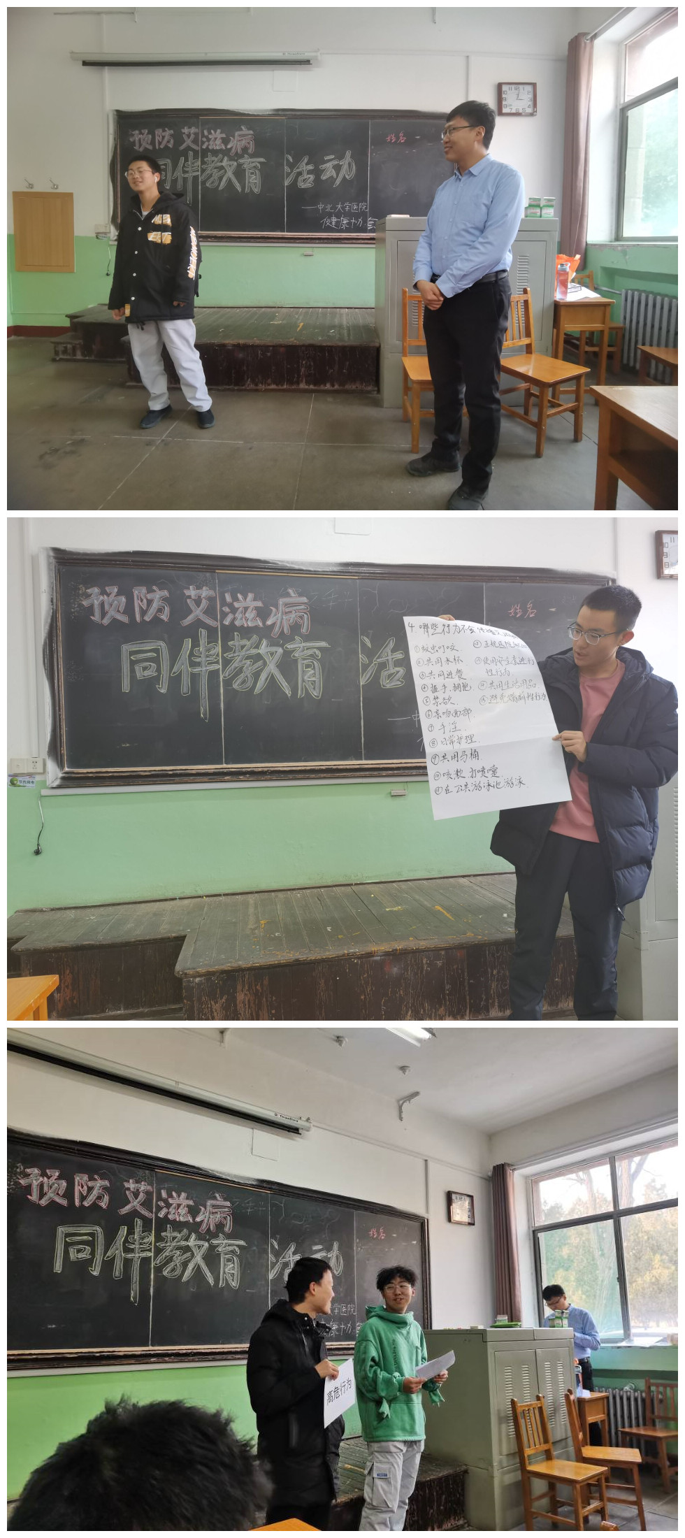 在校医院赵海滨医生的组织下,学院派出两名同学参加预防艾滋病同伴教育活动作为防艾志愿宣传员,同学们在活动结束后在学院宿舍内积极宣传防艾知识,让艾滋病预防进基层宿舍,由点及面进行普及。