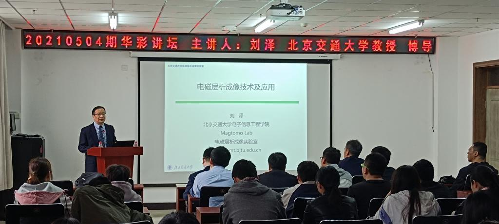 2021年4月23日上午9点,北京交通大学电子信息工程刘泽教授应邀来学校进行学术交流,并在科学楼B座715学术报告厅做了题为“电磁层析成像技术及高可靠测控系统设计”的学术报告。