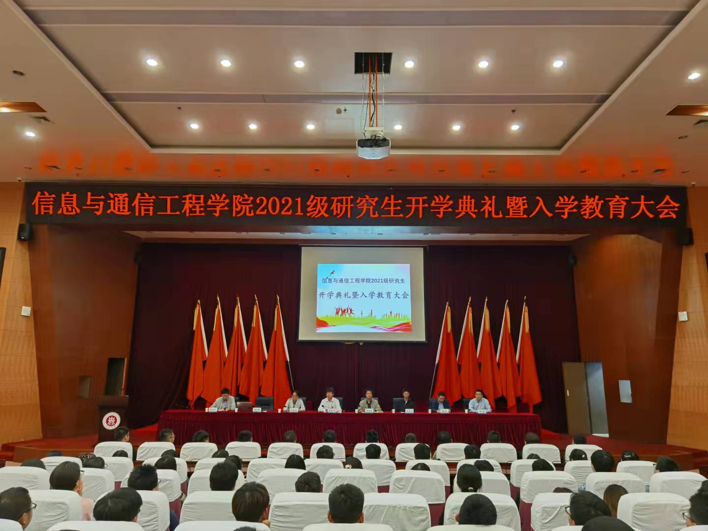 2021级研究生开学典礼暨入学教育大会在校图书馆五层学术报告厅举行。学院党委书记曹凤才、院长杨风暴、院党委副书记兼副院长魏媛媛、电子与通信工程系主任陈友兴、生物医学工程系主任张权以及研究生导师代表刘吉等出席了会议,大会在嘹亮的国歌声中拉开帷幕。