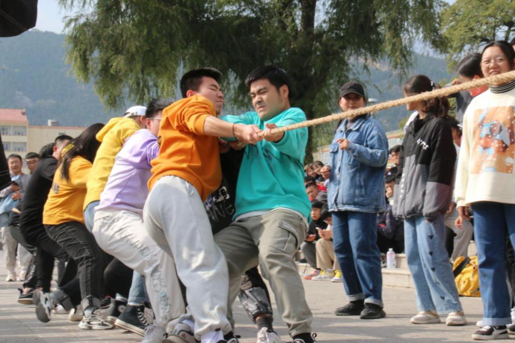 活动在雄壮的国歌声中拉开帷幕。王彪老师在动员讲话中指出,大学生应走出宿舍、走进操场,希望大家能够通过本次趣味运动会进一步增进沟通交流,锻炼强健体魄,营造乐观向上的氛围。新生代表于翰林的发言,充分展现了新生拼搏进取的精神风貌。本次趣味运动会共设立九个项目:手忙脚乱、跳大绳、珠行万里、纸杯传水、传递呼啦圈、螃蟹接力、投球、拔河。
