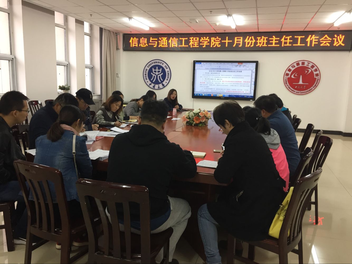 最后,各班主任就所带班级的具体情况以及班主任工作所遇到的实际问题进行了交流和探讨。学院辅导员和班主任将继续以学生为本,同心协力做好本学期的班级工作,保证学生工作的顺利开展!