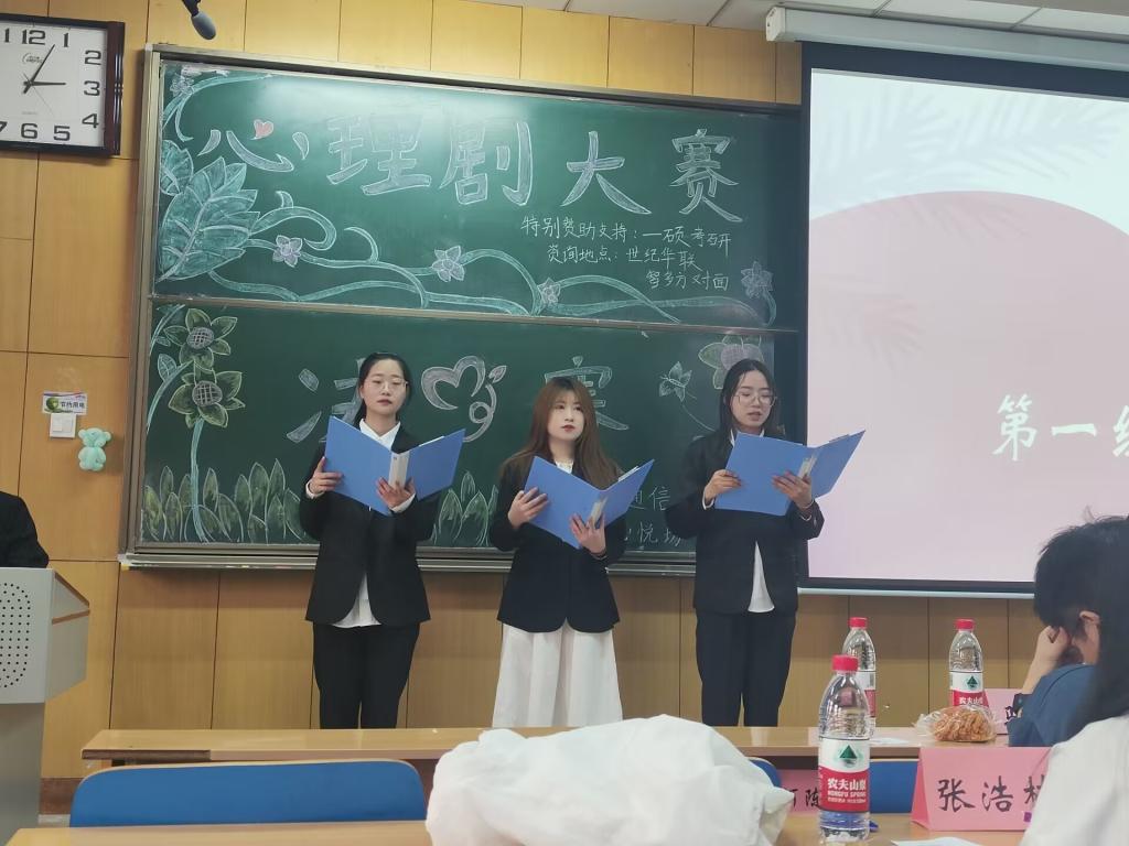 决赛现场,同学们通过“自己演、演自己”,将大学生日常生活与心理健康教育相融合,以大学生自我成长、追求梦想、网络暴力、人际关系等方面心理冲突为立足点,演绎出校园中常见的心理困惑及排解方法,表达质朴,感情真挚,引人深思,发人深省,引发了现场观众的强烈共鸣。 不同的剧目带来的不同的感受,其中《校园爱情》、《网络世界》、《面具人生》、《学习生活》、《家庭关系》这些剧目给观众们留下了深刻的印象。校园心理剧把学生在生活、学习、交往中的心理冲突、烦恼、困惑等,以小品表演、角色扮演、情景对话等方式编成“小剧本”进行表演,在剧中融入心理学的知识原理和技巧,有效提升学生心理健康成效。