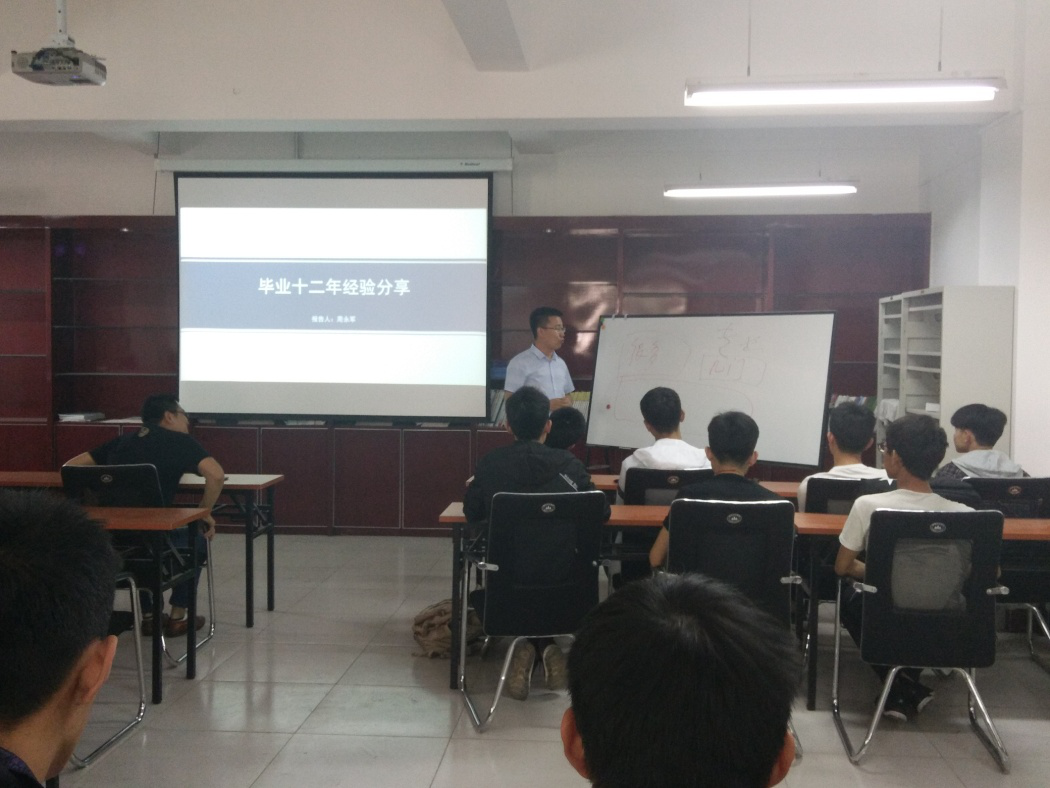 优秀校友赵利峰校友首先就自己对本专业的理解与同学们进行了互动,随后分享了自己毕业十年来的职业之路,建议同学们在大学期间多关注各类科技咨讯,确立自己的短中期目标。最后,赵利峰校友与同学们讨论了物联网,人工智能,机器人,区块链,信息安全等与专业密切相关且为时下比较热门的发展方向。