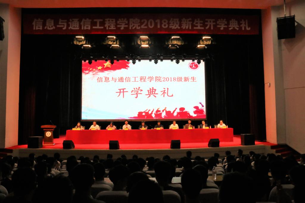 2018级新生开学典礼在科艺苑隆重举行。副校长潘晋孝、学院党委书记曹凤才、院长杨风暴、电工电子实验教学示范中心主任兼副院长王黎明、院党委副书记兼副院长魏媛媛、信息与通信工程学科管理部主任陈友兴、生物医学工程学科管理部主任张权、光学工程学科管理部副主任张志伟、信息与通信工程学科管理部副主任姚金杰以及各新生班班主任、班主任助理参加了此次会议。会议由学生科科长任雁主持。
