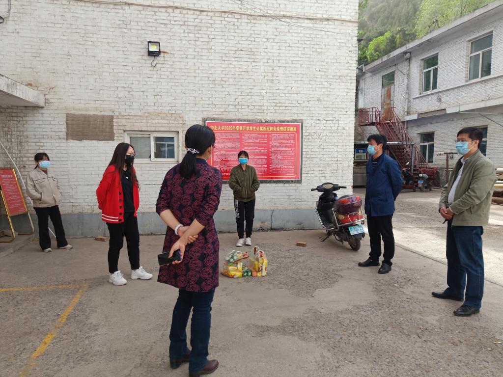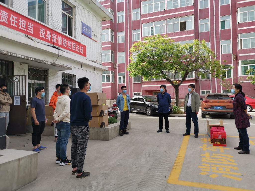 在慰问的过程中,学院领导为学生们送上了酸奶、牛肉、饼干等生活物资,也送上了学院的温暖与问候。“回来还适应吗?”“学校的饭菜好吃吗?”“毕业设计完成地怎么样?”“学习生活上有没有什么困难?”院领导亲切询问学生学习生活等情况,嘱咐他们一定要加强自我防护,按时作息,保证充足的睡眠,保持良好心态,加强和导师联系,顺利完成学业。院领导在慰问中勉励学生珍惜大学最后的时光,在抗击疫情中体悟对生命的敬畏,扛起家国的责任。