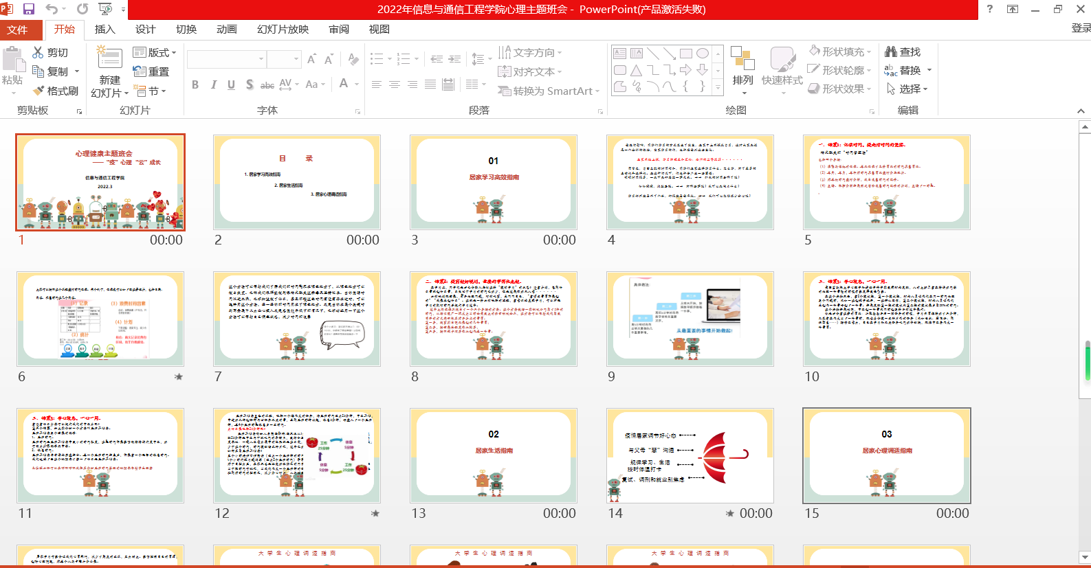 为进一步做好疫情防控背景下学生的心理问题疏导和帮扶工作,提高学生的心理调节能力,培养良好的心理品质,以积极心态科学应对疫情,4月中旬,学院面向本科生各班级开展““疫”路同行,守护心理健康”和““疫”心理 “云”成长”心理健康教育主题班会。此次心理健康教育主题班会的召开,有助于同学们养成积极乐观的心态,更有利于当前形势下禁漫