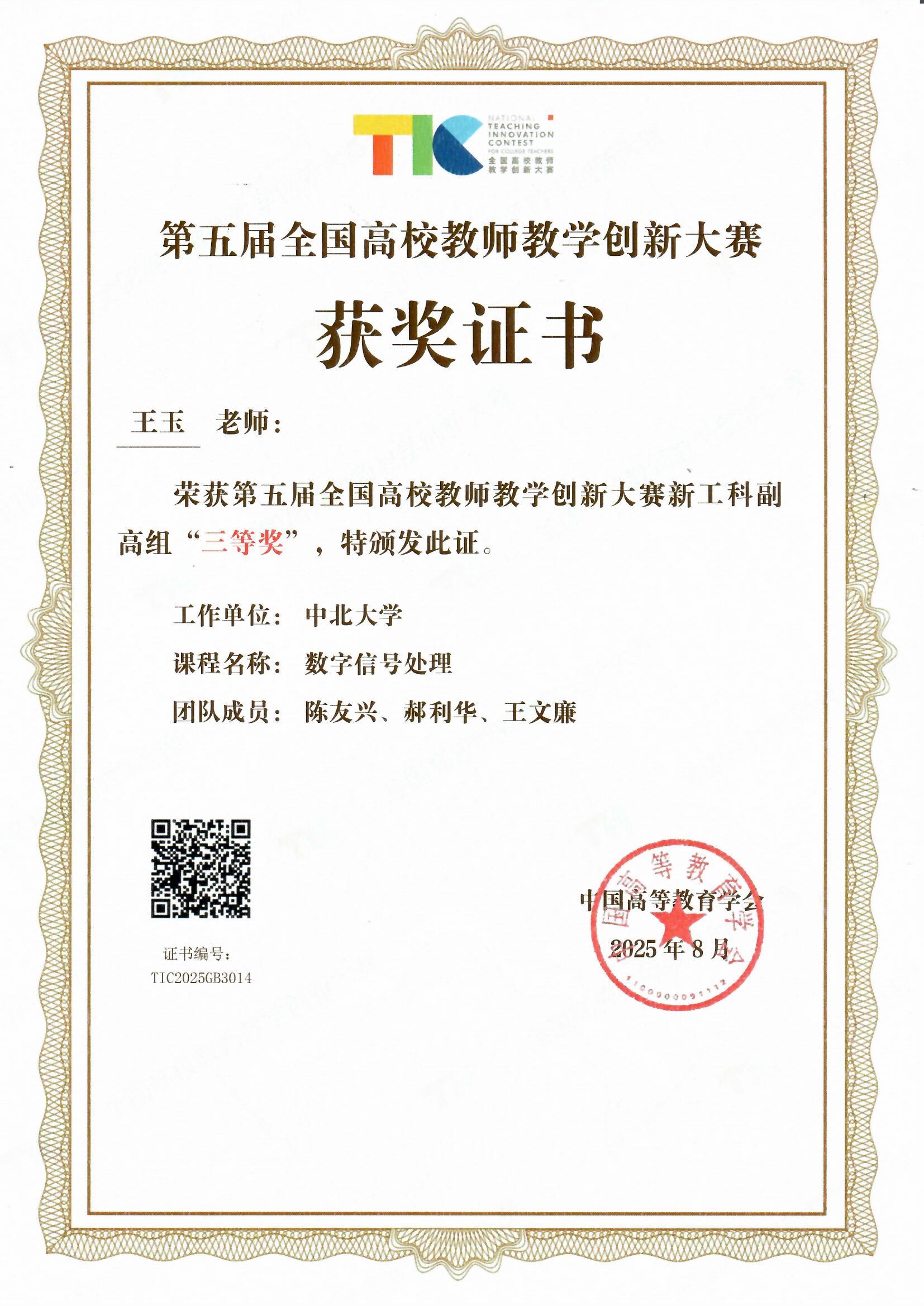 王玉老师团队携《数字信号处理》课程从众多优秀选手中脱颖而出荣获新工科副高组三等奖,充分体现了禁漫