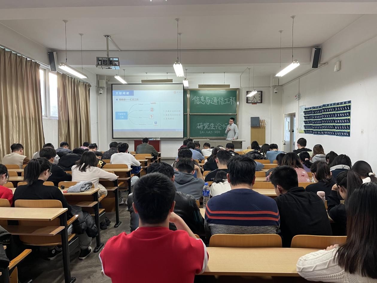 侯宇超博士则针对科研内容中的常用方法进行了详细讲解,包括:文献检索、文献阅读、论文选题、论文写作等方面,尤其在论文选题方面,侯宇超师兄以自己的研究题目为例,强调要对原有技术的不足提出创新点,依据研究领域的热点问题,结合自己的研究内容选择适合的论文题目。