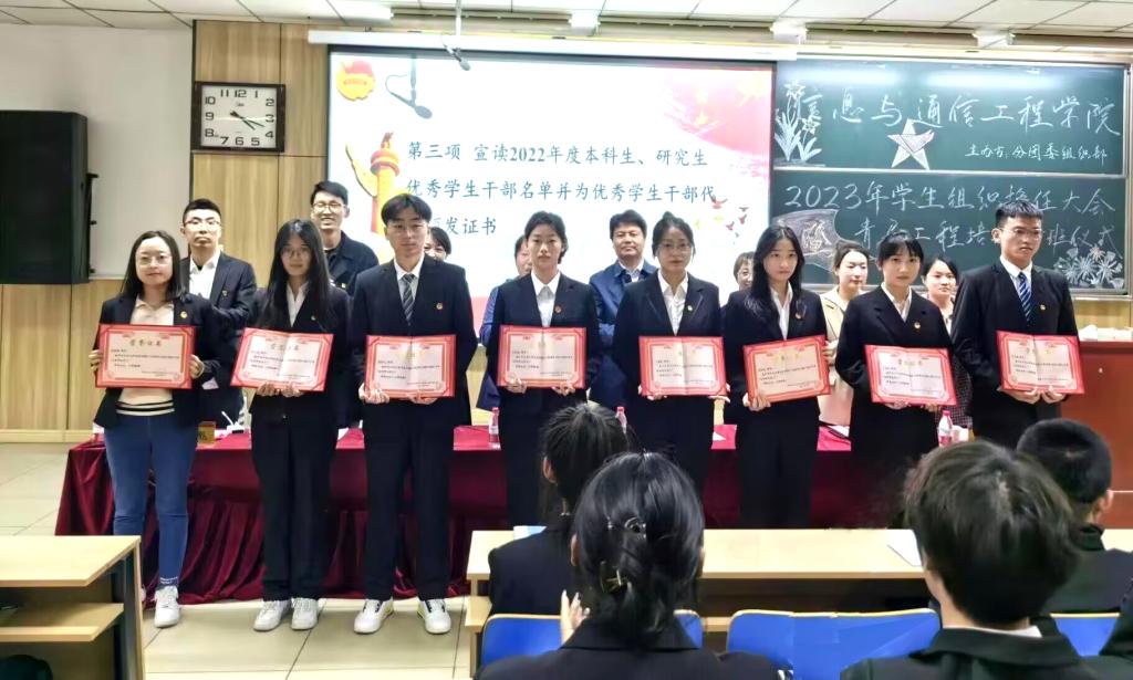 学生科张永玲老师宣读2022年度本科生、研究生优秀学生骨干名单,并为其颁发证书。与会教师分别宣读了团委、学生会、研究生会及其他学生组织学生骨干任命书。孟伟老师宣读了本次青共校培训安排及考核要求。