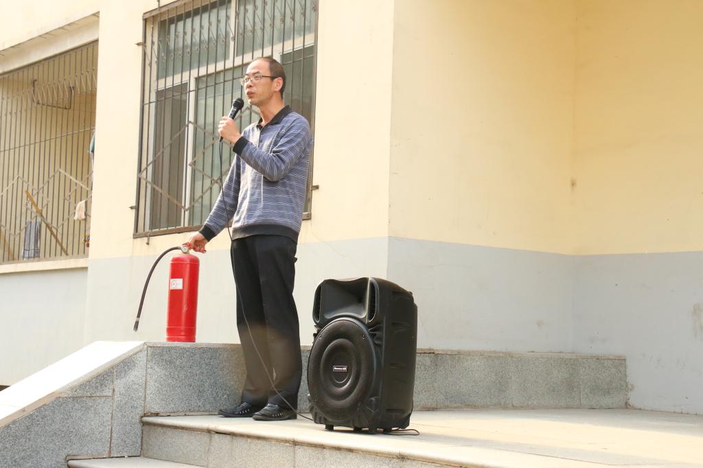 随着学生们在疏散引导组的疏散下迅速有序的撤离,后勤组人员立即拨打了报警电话。在撤离的过程中,有两名学生被困,救援组及时到位,救出被困学生,紧急送上救护车。在消防车到来后,火情得到了控制。演练基本结束后,由校医院医务人员为大家讲解了紧急救护知识,石老师为大家讲解了有关灭火器的的使用及注意事项并让大家近距离操作。