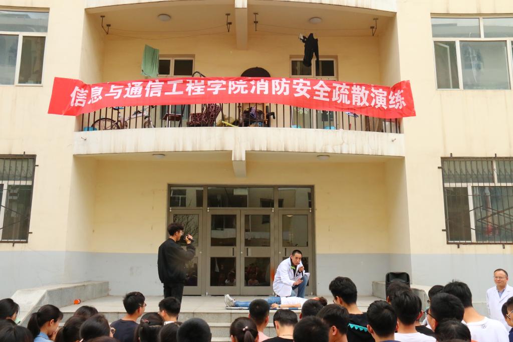 消防安全疏散演练在文韬四文韬五公寓举行,学院党委副书记兼副院长魏媛媛教授担任总指挥、学生科科长任雁老师担任副总指挥;由学生科赵健东老师带领的中北大学消防安全保护人员组成灭火组、石芳娟老师带领宿管会部分成员组成疏散引导组、邢杰老师及校医院部分医务人员组成安全防护救护组、柴锂娟老师及宿管会部分成员组成后勤保障组,并由大一五个班级参加演练。一切准备就绪后,演练正式开始。
