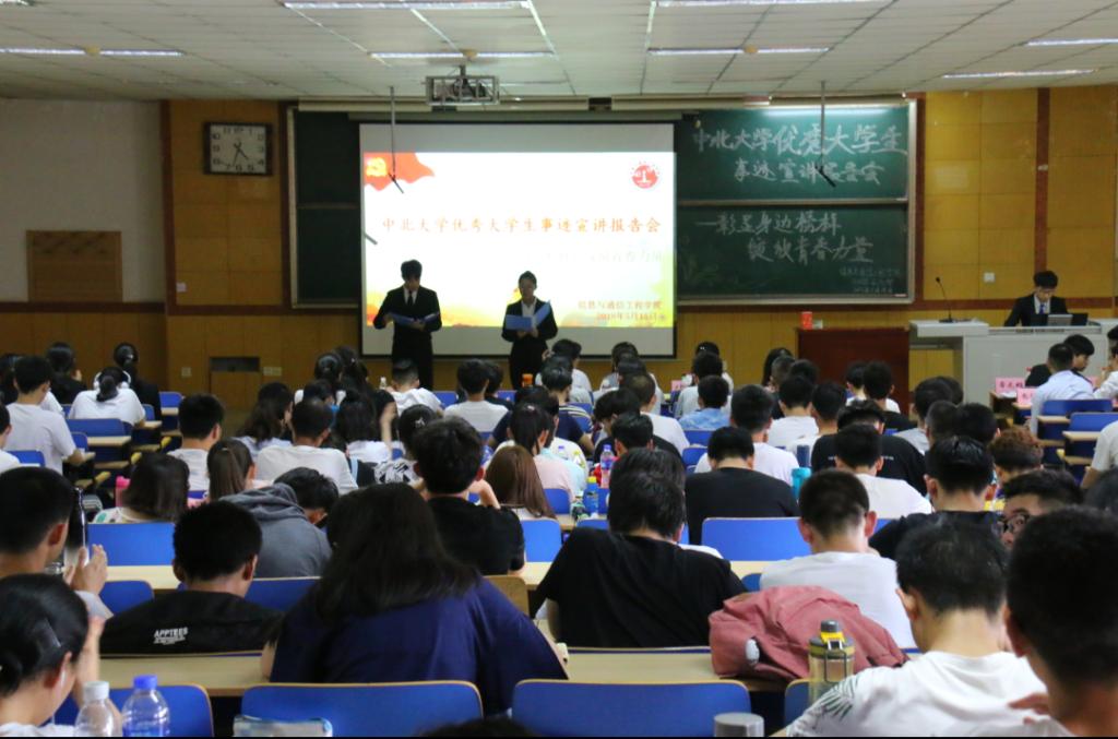 分团委实践部在09302h举办了以“彰显身边榜样,绽放青春力量”为主旨的中北大学优秀大学生事迹宣讲报告会。学院党委副书记兼副院长魏媛媛教授和学生科柴锂娟老师作为嘉宾出席了本次大会。