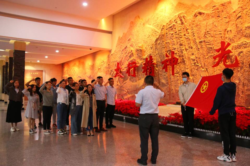 签约仪式后,双方赴长治武乡县太行山八路军纪念馆,进行“重温太行精神 传承红色基因”的主题团日活动,重温多年前那一段血雨腥风、豪迈悲壮的抗战历史,重新感受太行英雄舍生忘死、抗击日寇的伟大情怀。公诚公司山西分公司团支部书记胡春昊带领大家面向团旗,庄严宣誓,重温入团誓词。