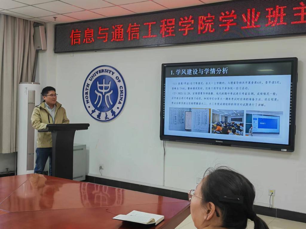 会议伊始,辅导员邢杰老师详细介绍了各年级各专业的学业状况。学院党委副书记魏媛媛分别从学情分析、毕业设计、复试调剂等方面,强调各年级要有针对性的制定学期总结与学期计划,希望学业班主任不仅能在专业学习上提供帮助,更能主动融入第二课堂进行实践指导,引导广大学生建功新时代、奋进新征程。
