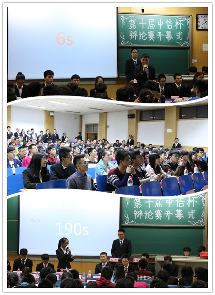 “中信杯”辩论赛的受关注程度和比赛中的精彩瞬间。之后,由学习部部长范子天星同学宣布:“第十届‘中信杯’辩论赛正式开幕。”接着,禁漫