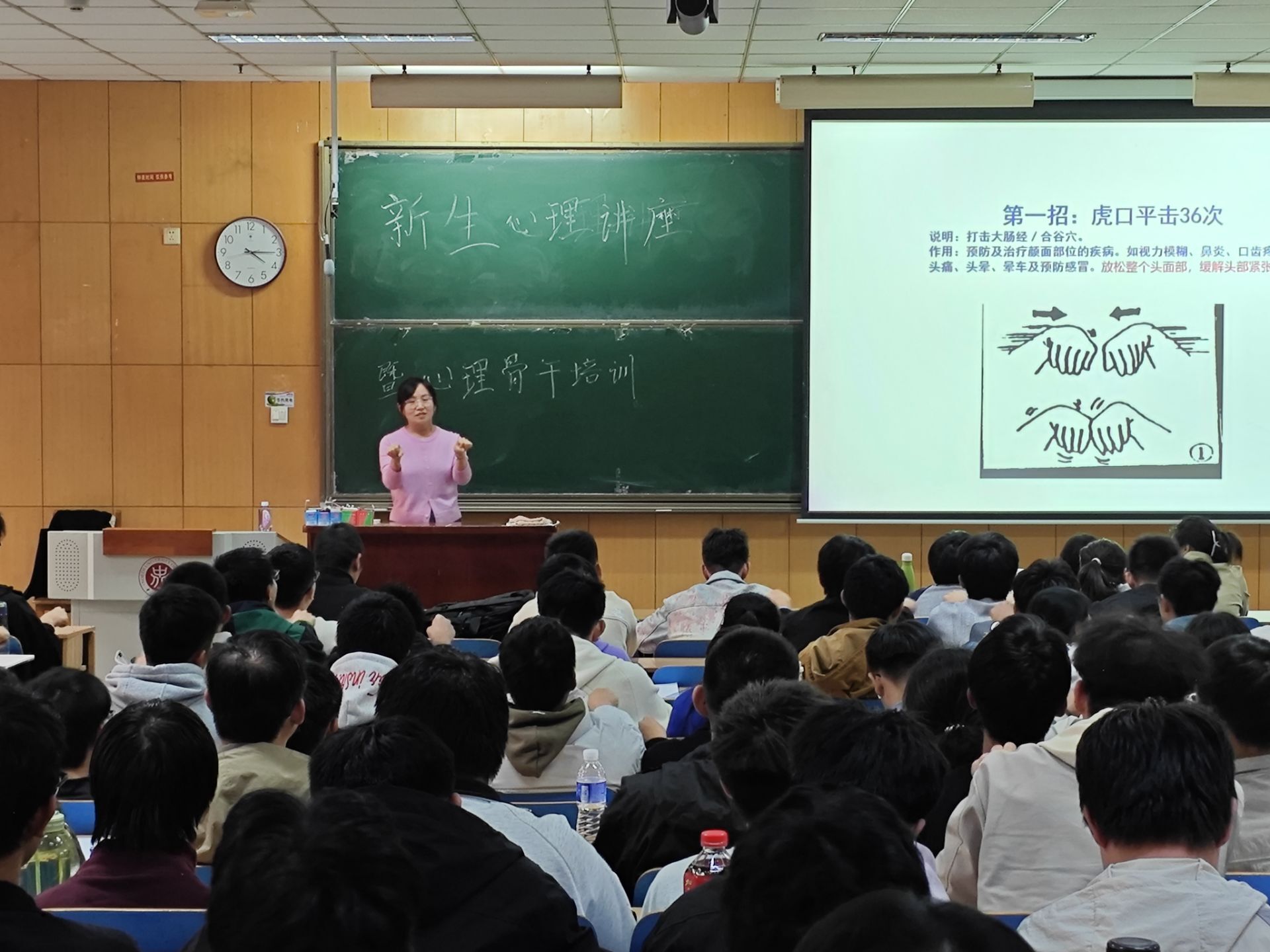 讲座中,苏老师结合 2025 级新生刚进入大学可能面临的 “环境陌生感”“学业节奏变化”“人际关系重建” 等典型心理困惑,以生动案例切入,系统讲解了 “新生心理适应的三个阶段”“情绪调节的 ABC 理论”“压力疏导的实用技巧” 等核心内容。针对新生普遍关注的 “如何平衡社团与学业”“怎样处理寝室人际关系” 等问题,苏老师通过现场互动问答,逐一给出具体可操作的建议,让在场新生在轻松的氛围中掌握了心理调适的方法。