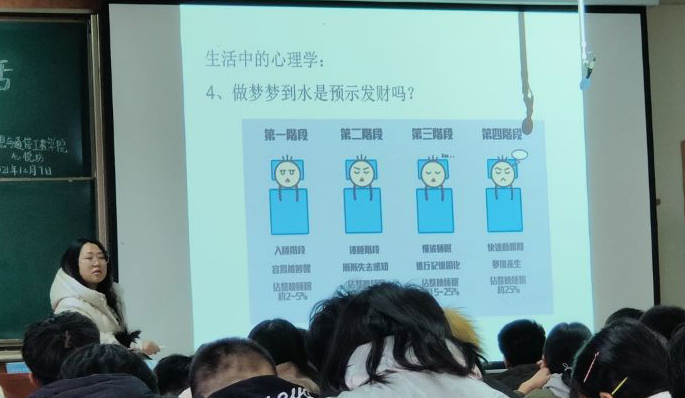在本次讲座中,王瑾老师,从感知觉入手到我们个体睡眠,自我意识,以及学习过程中系列位置效应,再到生活中的日常行为,生动科学的讲述了心理学与我们日常生活的密切联系。“做梦梦到水代表发财么?”“为什么女生比男生更馋?”“我们是从什么时候认识到自我的?”... ...等等生动详实的例子让我们感觉到心理学就在我们身边。王瑾老师提出希望大家能够更好的把心理学知识应用到学习生活当中,用积极的心理品质去解决生活中的各类问题。
