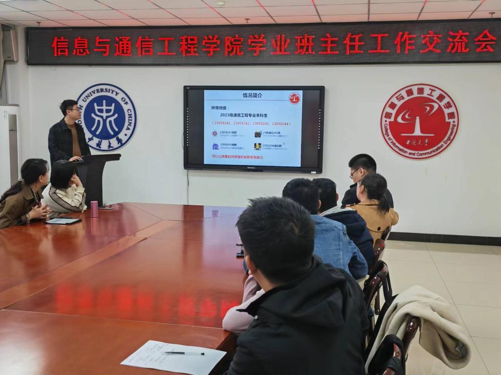 为顺利开展新学期本科生教育管理工作,推动学风、教风、作风建设,及时总结和推广班级管理经验,3月19日下午,学院在院楼713会议室召开2024年春季学期本科学业班主任工作交流会,学院党委副书记魏媛媛,副院长陈友兴,全体学业班主任及辅导员参加会议。