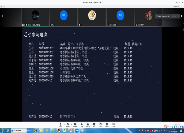 2019-2020学年第一学期优良学风班的答辩会因受疫情影响,以腾讯会议形式在线上举行。学生科相关老师参与此次答辩会并担任评委。